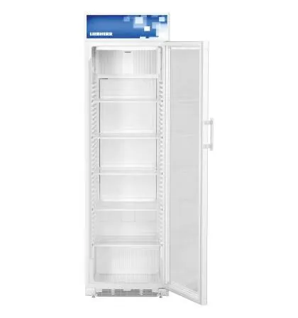 Холодильный шкаф для напитков Liebherr FKDv 4203 Comfort с динамическим охлаждением вмещает 256 ПЭТ бутылок 0.5 литров и 512 банок 0,33 литра. Интегрированные светильники в потолке создают световой поток сверху вниз, освещая пространство внутри. Для ограничения доступа к напиткам и предотвращения их несанкционированного потребления предусмотрен механический замок. Дисплей с задней подсветкой на светодиодах привлекает усиленное внимание к вашей торговой марке.