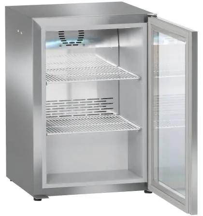 Холодильный шкаф для напитков Liebherr FKv 503 объемом 42 литра вмещает 27 ПЭТ бутылок 0.5 литров и 60 банок 0,33 литра. На полках с возможностью настройки высоты хранятся бутылки и банки, как вертикально, так и горизонтально. Дверца из стекла с теплоизоляционными характеристиками позволяет лучше видеть продукцию. Потолочная LED-подсветка внутри создает идеальные условия освещения. Встраиваемый в прилавок холодильник с циркуляционным воздушным охлаждением.