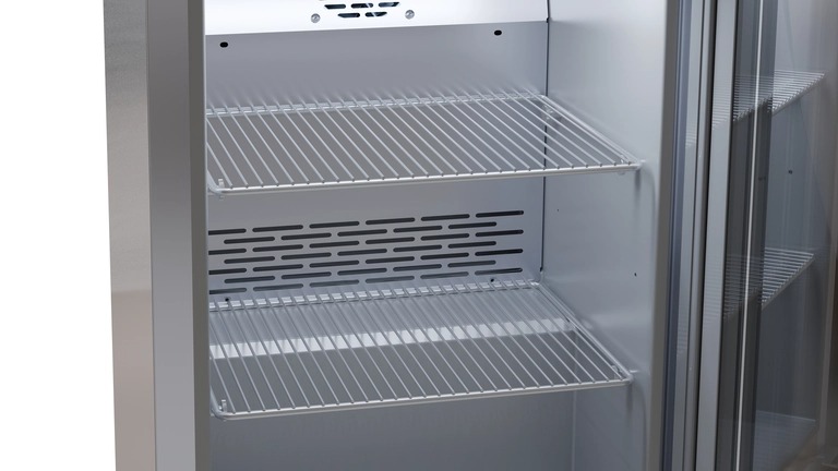 Внутренняя часть холодильника сделана из одного куска пластика, что упрощает очистку. Для её изготовления используется полистирол — материал, отличающийся прочностью и способностью служить долгие годы. Этот материал также экологически безопасен и может быть переработан.