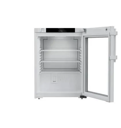 Компактный лабораторный холодильник Liebherr SRTvg 1511 серии Performance для точного и безопасного хранения чувствительных веществ и реагентов. Модель оснащена стеклянной дверцей, системами автоматической сигнализации и рассчитана на длительный срок службы.