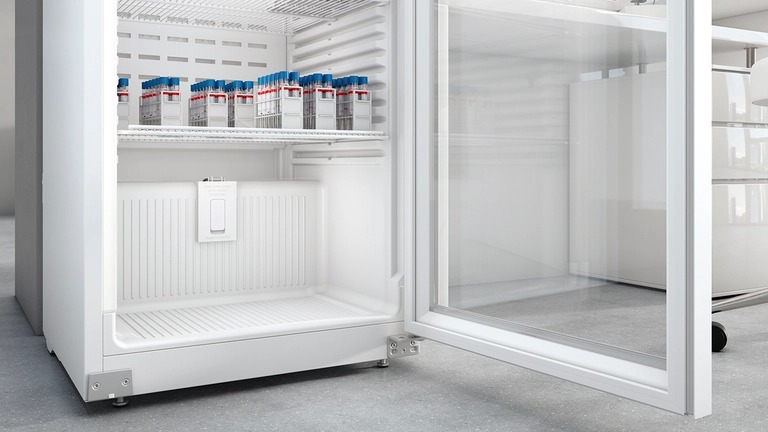 В случае сбоя, когда температура лабораторного холодильника опускается ниже заданного уровня в +2 °C (при настройке на +5 °C), активируется функция контроля SafetyDevice. Эта функция не только возвращает температуру к норме, но и подает звуковой сигнал, а также предохраняет содержимое от замораживания.