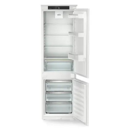 Встраиваемый двухкамерный холодильник Liebherr ICNSd 5103 Pure NoFrost - базовая модель с дверным механизмом на скользящих направляющих. Объем полезного пространства составляет 251 литр. Зона свежести EasyFresh — это надежное хранилище для овощей и фруктов, с ограничителями, которые предотвращают выпадение ящика, а герметичность сохраняет влажность внутри. В холодильной камеры достаточно места для противня. ICNSd 5103 с сенсорным дисплеем и потолочным светодиодным освещением. Потолочная LED-панель равномерно заливает светом каждую полку, не оставляя темных углов. Холодильник можно оснастить модулем SmartDeviceBox для подключения к Интернету.