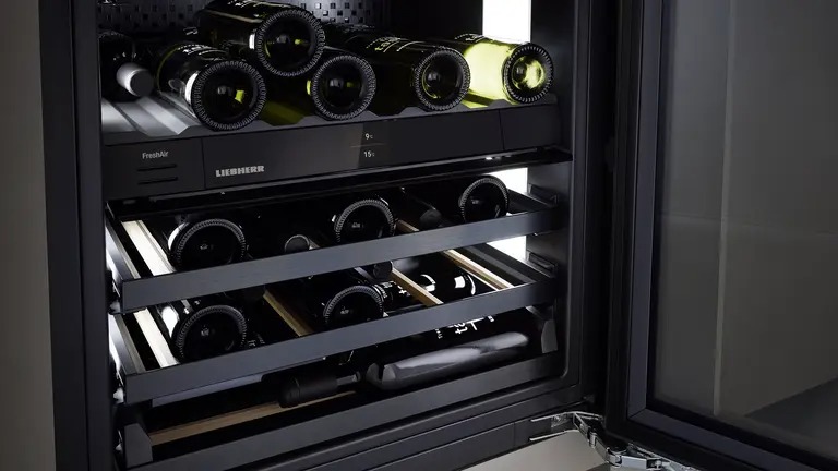 В винном шкафу используются тихий компрессор, разработанный компанией Liebherr, и устойчивые деревянные полки из массива бука. Вина храниться в тихой и спокойной обстановке.