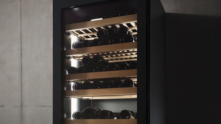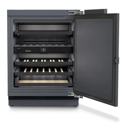 В винном шкафу используются тихий компрессор, разработанный компанией Liebherr, и устойчивые деревянные полки из массива бука. Вина храниться в тихой и спокойной обстановке.